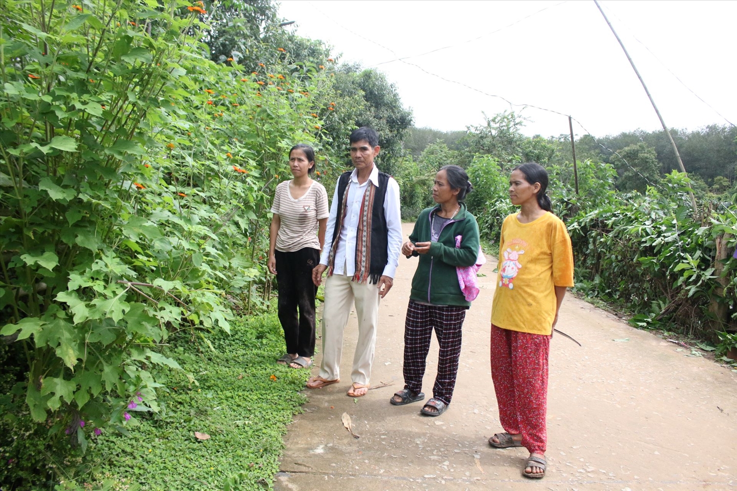 Ông A Nẻo thường xuyên tuyên truyền, vận động và hướng dẫn bà con trong làng chuyển đổi cơ cấu cây trồng để nâng cao thu nhập. (Ảnh: Ngọc Chí)