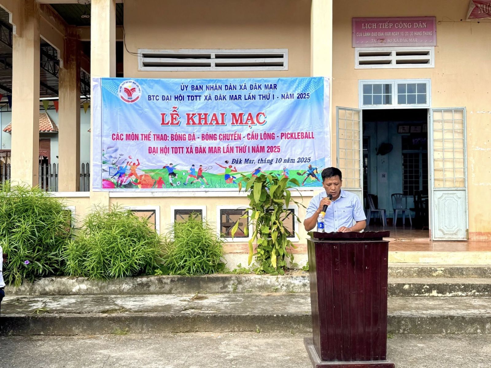 Sáng nay ngày 14/10/2025, tại Sân Nhà văn hoá Thôn 1, Ban Tổ chức Đại hội Thể dục, Thể thao xã Đăk Mar lần thứ I năm 2025 đã tổ chức khai mạc Giải bóng chuyền nam xã Đăk Mar.
