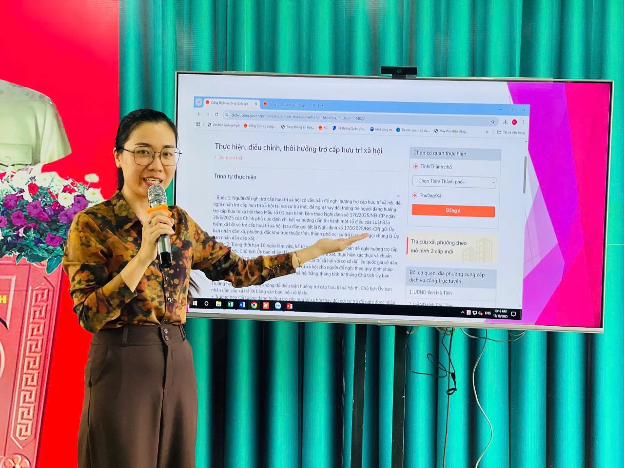Không dừng lại ở phần lễ, chương trình đã chuyển ngay sang phần “học vụ” đầy thiết thực. Sau khi xem phóng sự về các mô hình hay của tỉnh, các đại biểu và người dân tham dự đã được trực tiếp hướng dẫn chi tiết các thao tác số cơ bản và quan trọng: