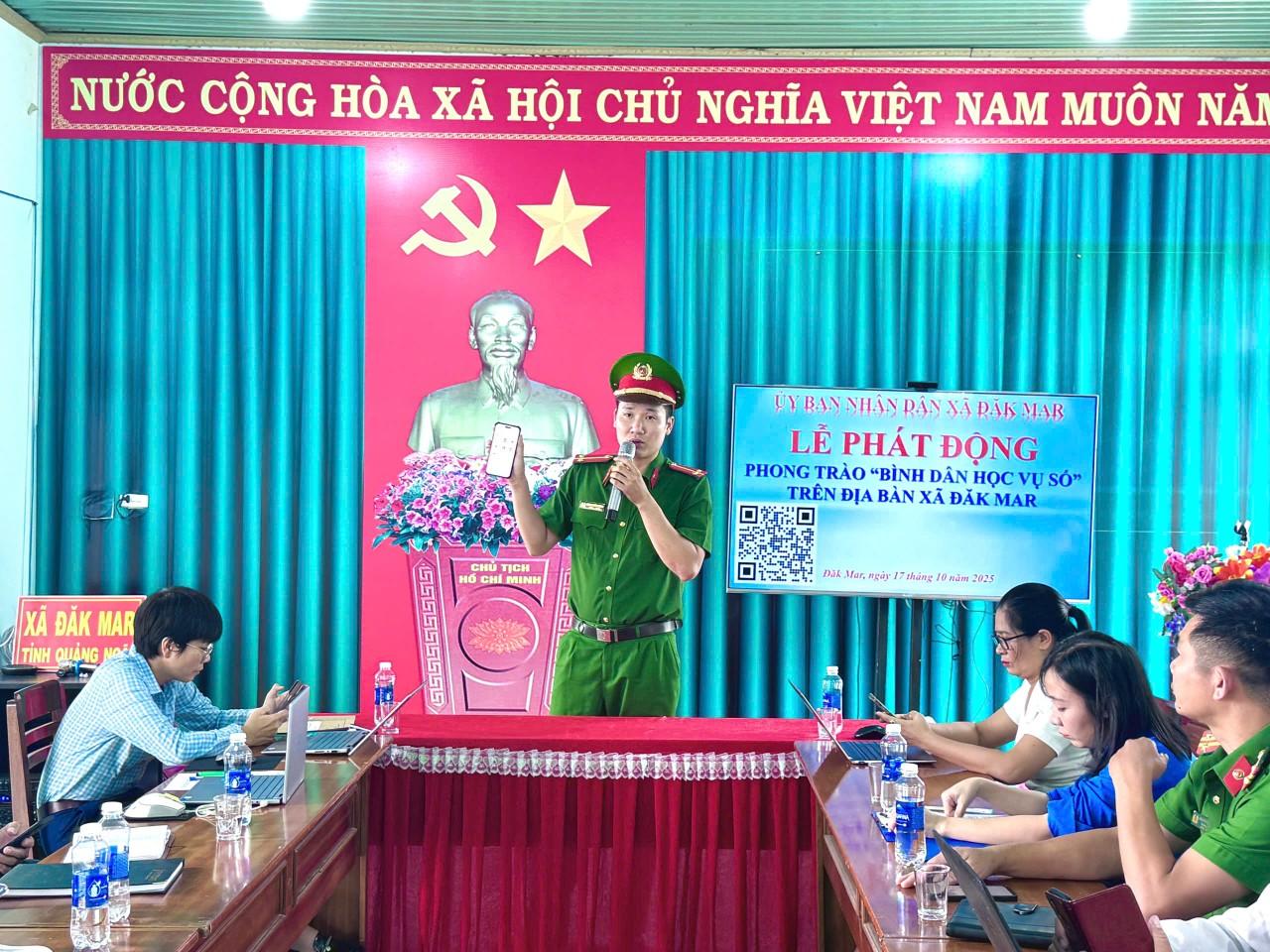 Chiều ngày 17/10/2025, tại Hội trường Ủy ban nhân dân xã Đăk Mar, Lễ Phát động Phong trào “Bình dân học vụ số” trên địa bàn xã đã được tổ chức long trọng và thành công tốt đẹp. Sự kiện do UBND xã chủ trì, đánh dấu một bước ngoặt quan trọng trong việc kêu gọi toàn dân tích cực học tập, rèn luyện kỹ năng số, góp phần hiện thực hóa mục tiêu chuyển đổi số tại địa phương.
