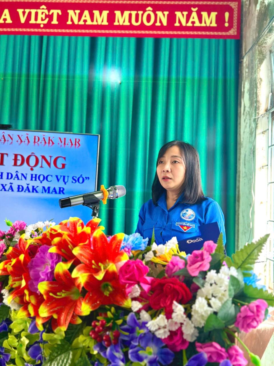 Phát biểu hưởng ứng đầy nhiệt huyết của Đoàn TNCS Hồ Chí Minh xã Đăk Mar, đồng chí Nguyễn Thị Ái Trinh – Đảng ủy viên, Bí thư Đoàn xã đã khẳng định quyết tâm của thế hệ trẻ Đăk Mar trong việc xung kích, đi đầu, đồng hành cùng người dân, đặc biệt là người cao tuổi, đồng bào dân tộc thiểu số trong hành trình chinh phục tri thức số.