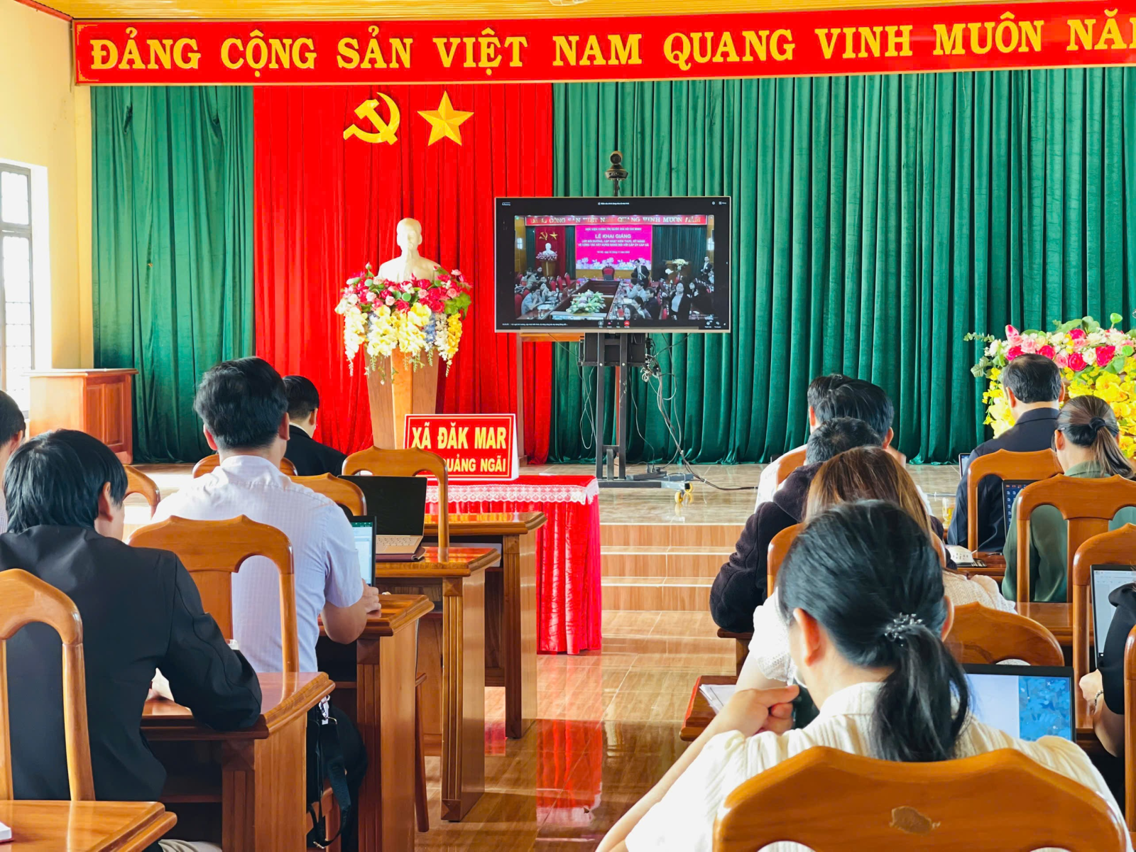 Tại điểm cầu Đảng ủy xã Đăk Mar, dự và chủ trì có đồng chí Nguyễn Bảo Tân– Bí thư Đảng ủy; đồng chí Trần Thị Yến – Phó Bí thư Đảng ủy, Chủ tịch UBND xã. Cùng tham gia còn có các đồng chí Ủy viên Ban Thường vụ, Ủy viên Ban Chấp hành Đảng bộ xã; cán bộ chuyên trách tham mưu, giúp việc Đảng ủy; lãnh đạo Ủy ban MTTQ và các tổ chức chính trị – xã hội; Trưởng, Phó các phòng chuyên môn, đơn vị thuộc UBND xã.